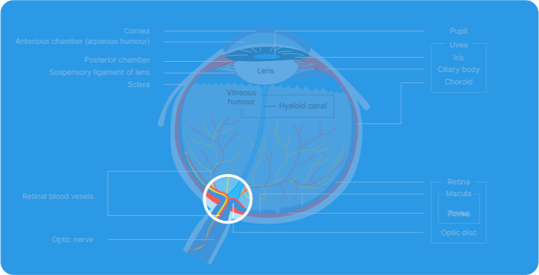 The fovea is a small bump in the eye where our vision is the sharpest.